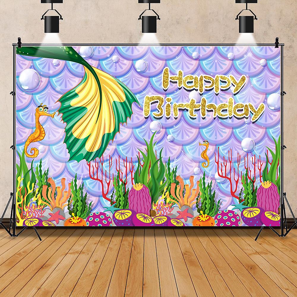 Mermaid Backdrop For Girls Birthday Party Under The Sea Glitter Blue Purple Scales Photography Background Girls Princess 7x5ft