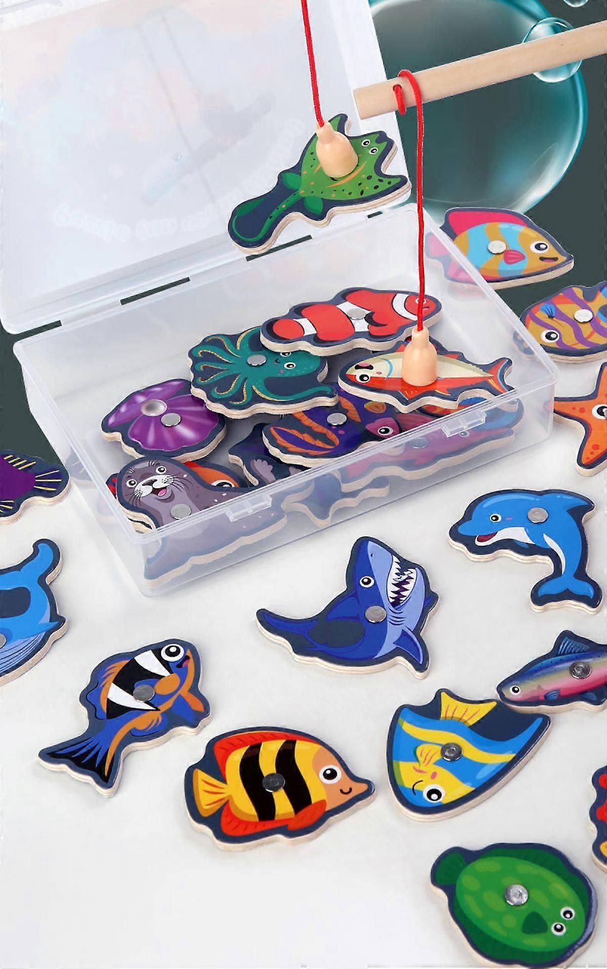 Wooden magnetic fishing game and puzzle with wooden magnets for ocean animals