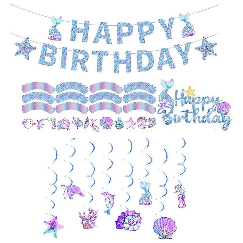 Ocean Themed Decorations Birthday Party Supplies Assorted Color 14x11.5x0.2cm Cake and Cupcake Decoration 1Set