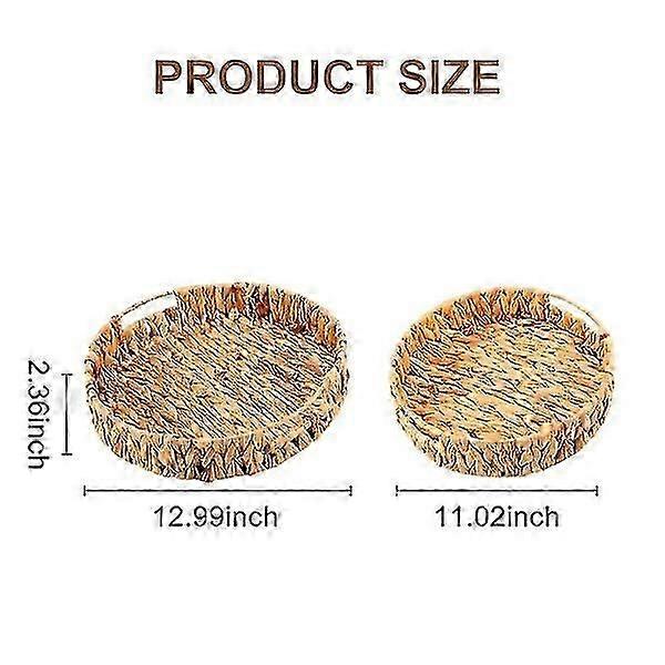 2 pcs Round Braided Trays in Seagrass and Water Hyacinth Set 33cm + 28cm Diameter Fruit Bowl