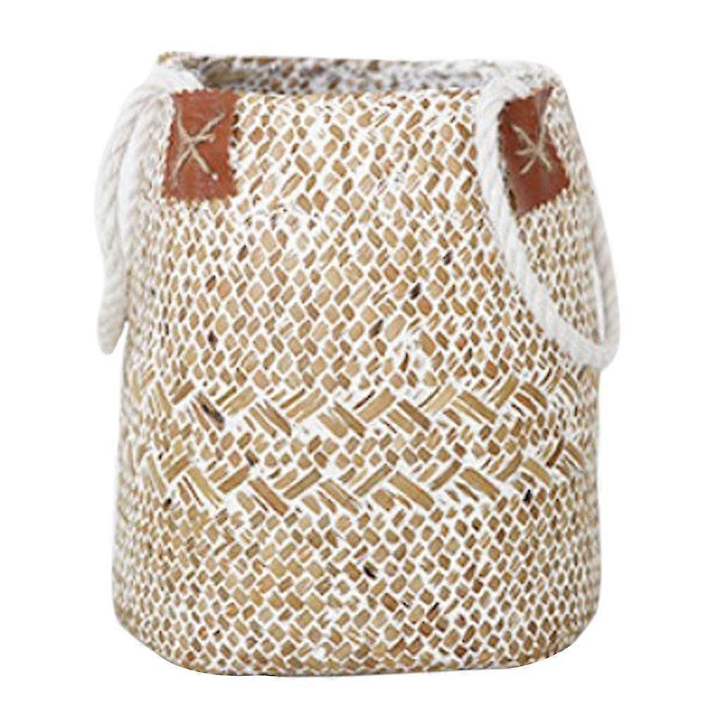 Sea Grass Folding Wicker Tote Bag Plant Flowerpot Window Box Basket White S