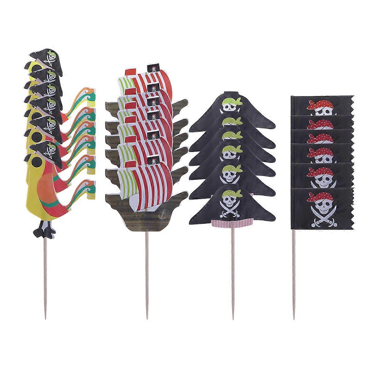 Pirate Cake Decorations Pirate Theme Fruit Cake Toppers Party Supplies Assorted Color 11.00X4.00X0.30CM Cake Decor 100Pcs