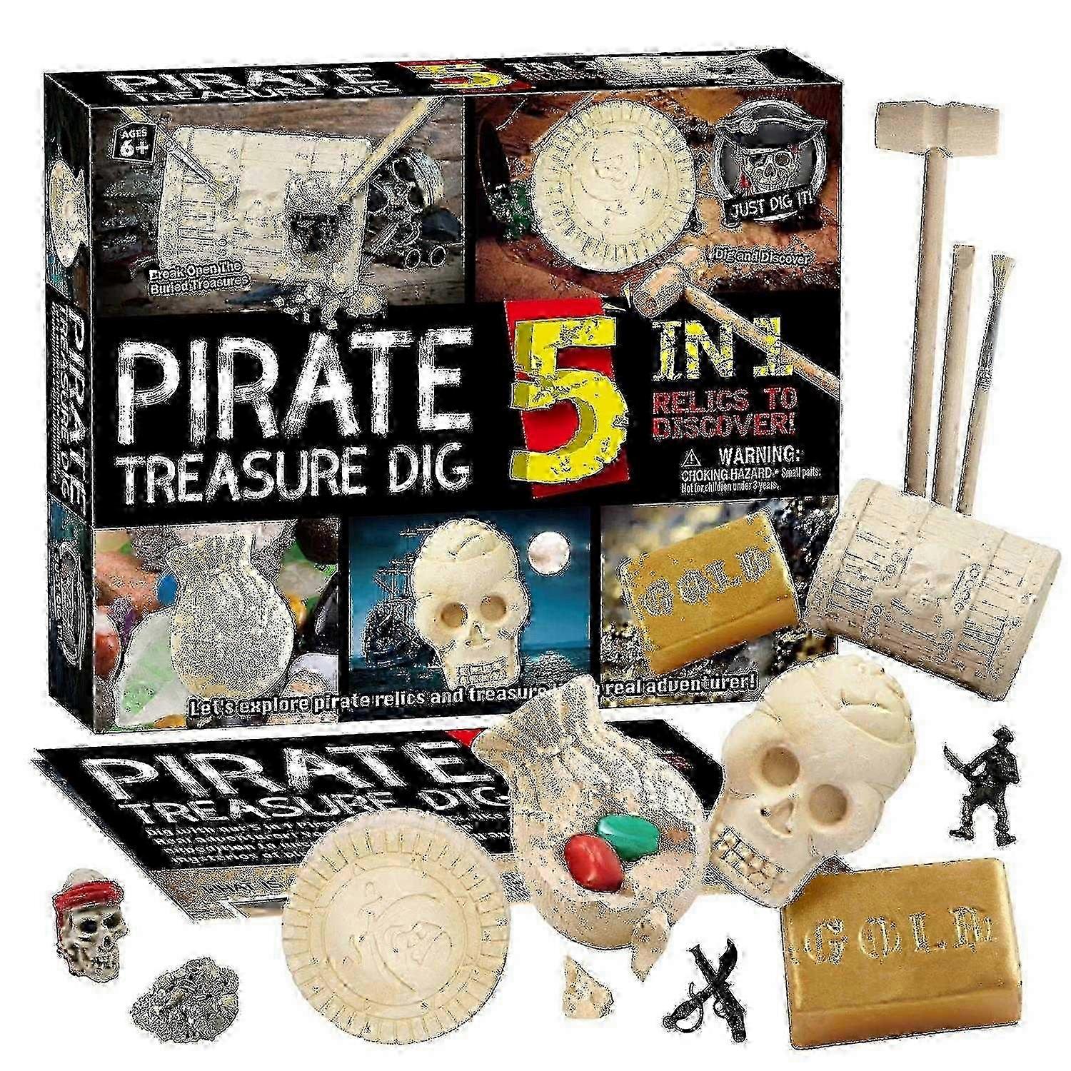 Pirate Treasure Dig Kit Gemstones Dig Kit 5 Bricks Treasure Mining Kits Pirate Toys STEM Toys Educat
