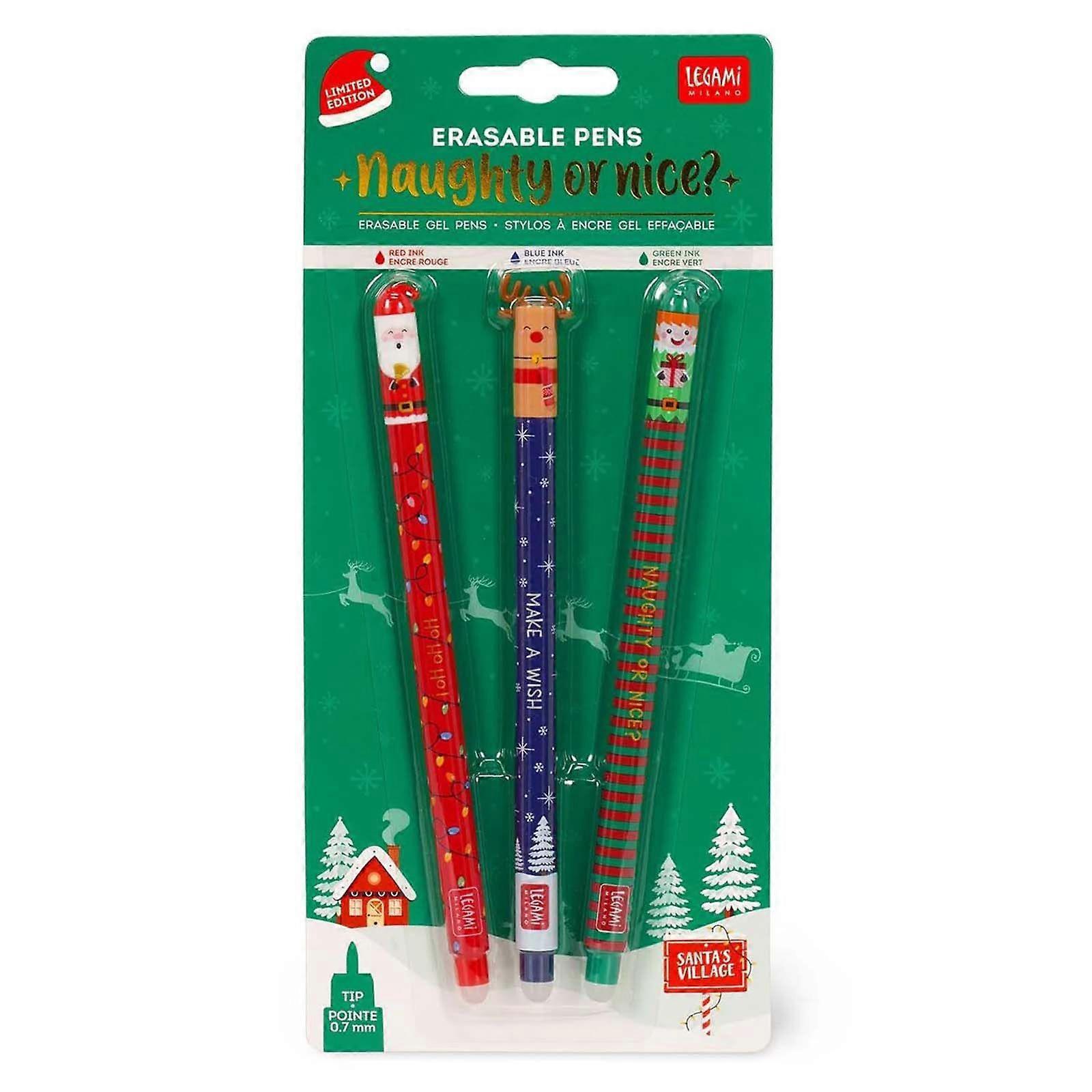 Hot New Legami Christmas Set with 3 erasable gel pens: Santa Claus, Reindeer, Elf