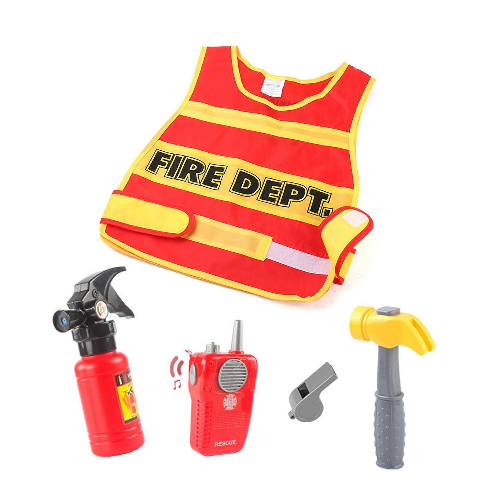 Firefighter Costume Toy Accessories Firefighter Role Play Dress-Up Set, Pretend Fireman Outfit for Kids and Toddlers Red