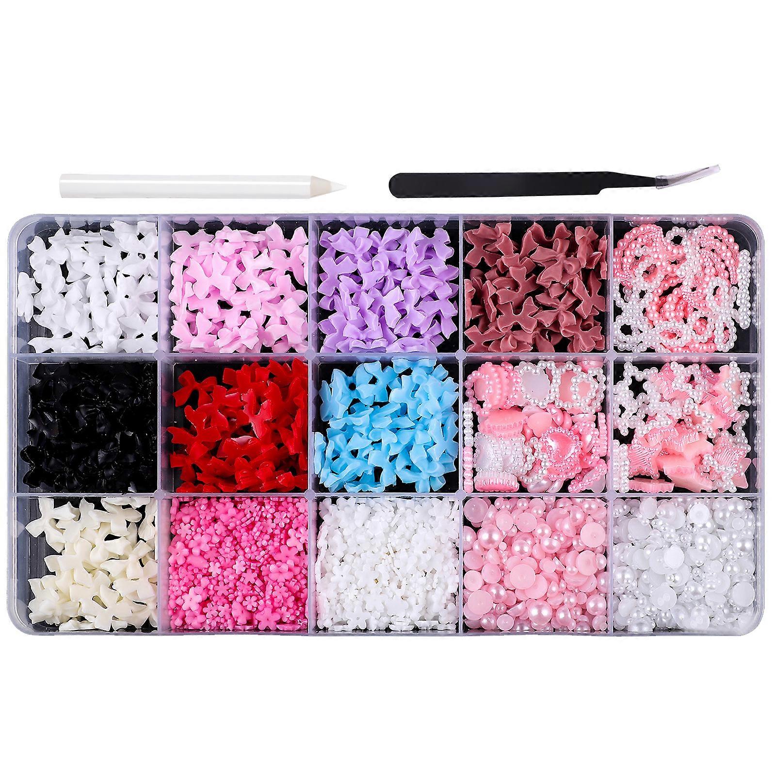 Mixed Shape Bowknot Nails Art Charms 3D Bow Nail Charms Flatback Pearl Beads Nails Art Decorations for Acrylic Nails