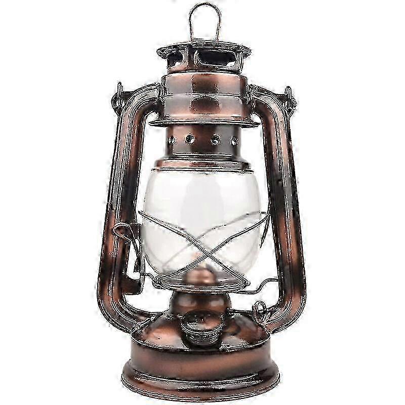 A Warm White, Retro Design LED Camping Lantern (24.5cm) that is Dimmable and Requires 4 AA Batteries.