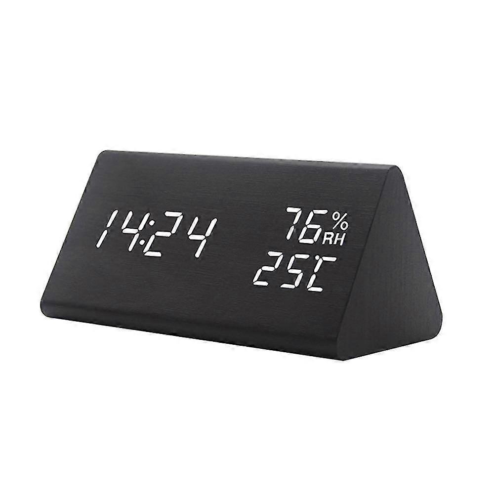 Modern Wooden LED Alarm Clock with Temperature Display & Sound Control - Stylish Digital Desk Clock for Home Decor
