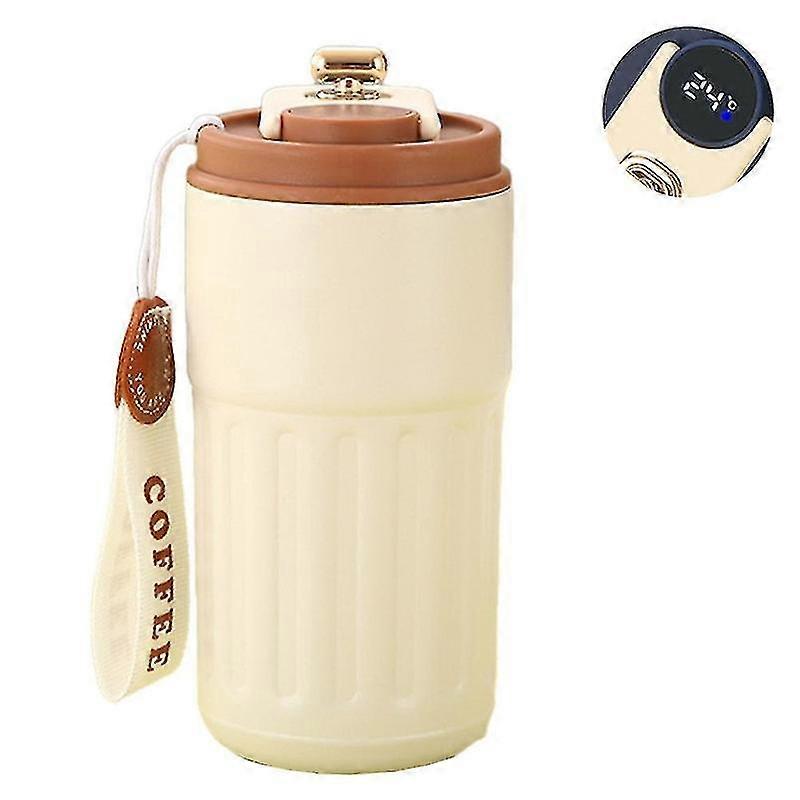 Stainless Steel Coffee Thermos with Temp Display - Insulated Travel Mug, Brown