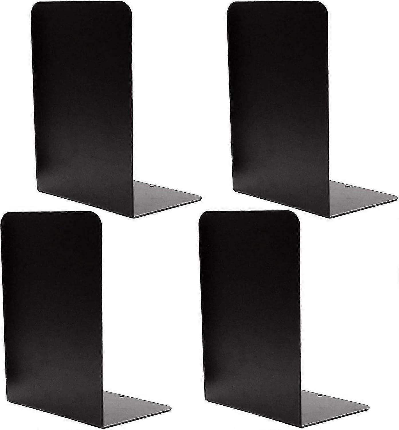 Set of 4 Heavy Duty Black Decorative Metal Book Supports with Non-Slip Rubber Base, Ideal for Any Bookshelf or Home Decor