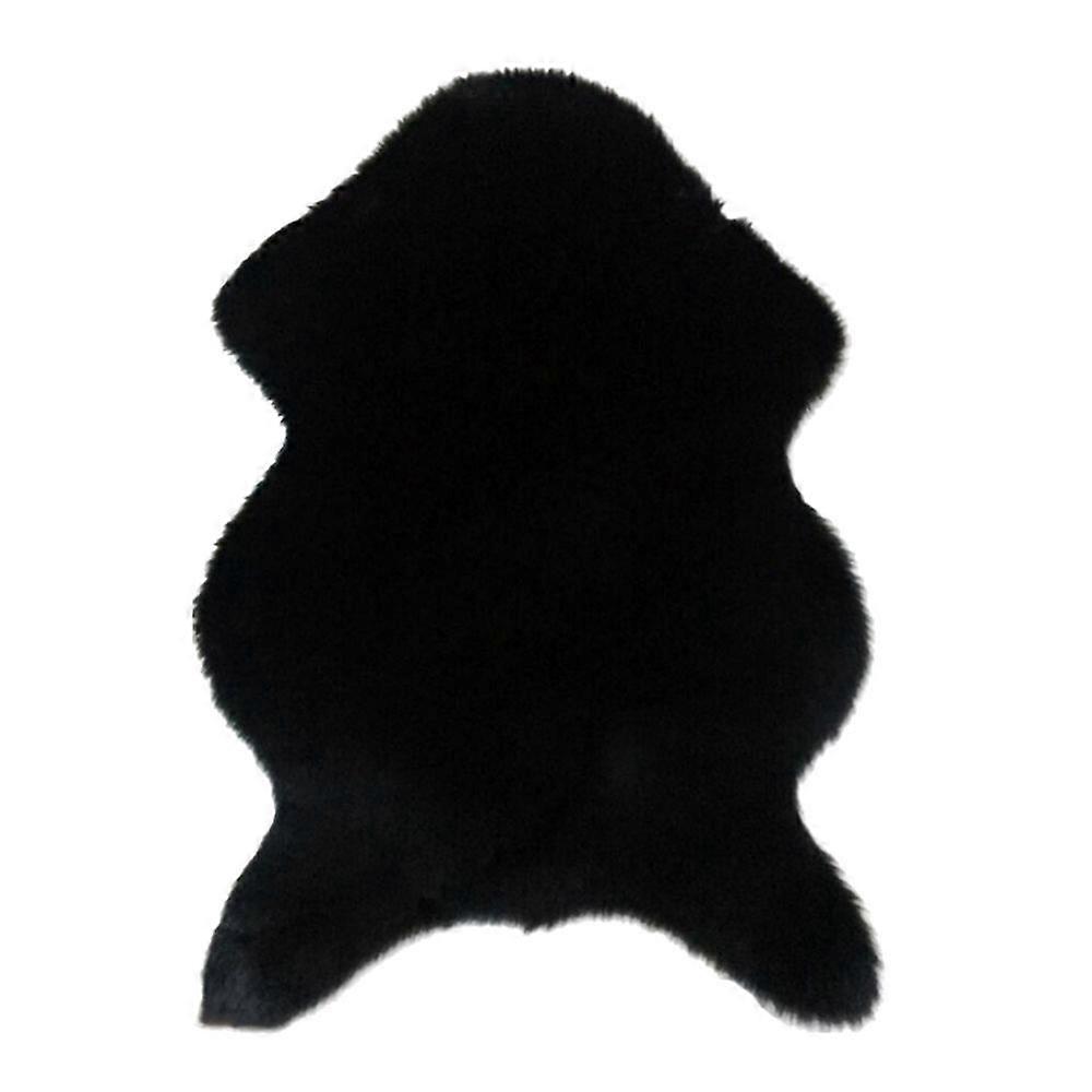 Non-slip Imitation Wool Fur Rug Chair Cushion Bedroom Faux Carpet Black