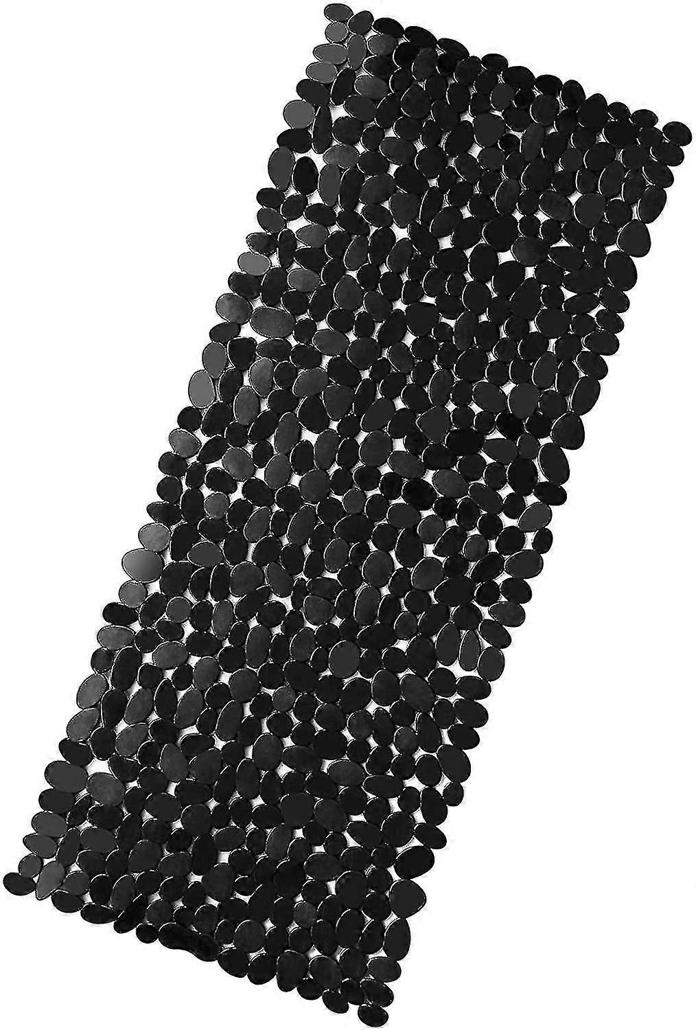 Non-slip Shower Mat Children's Bath Tub Mat With Suction Cup Mildew Proof Pebble Shower Bottom Machine Washable, Extra Long 88 X 40cm Black