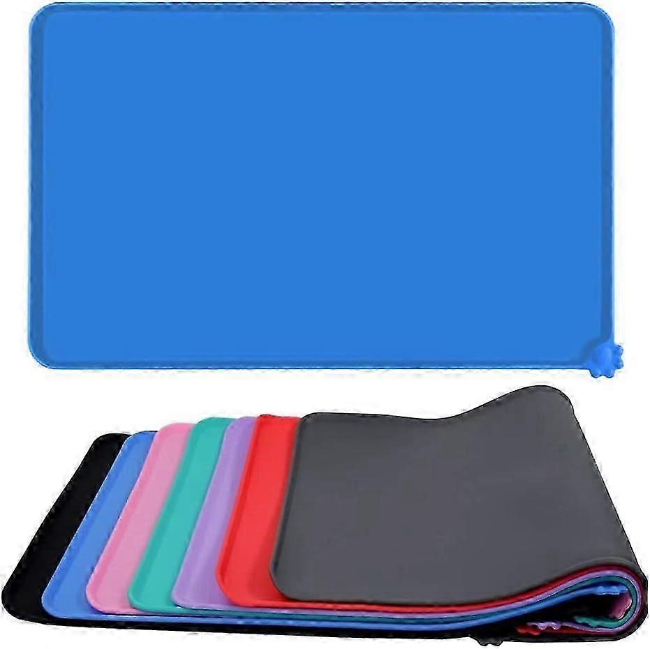Non-Slip Silicone Pet Food Mat, Spill-Proof Feeding Tray, Waterproof Bowl Mat, Safe Non-Toxic for Dogs Cats (Blue)
