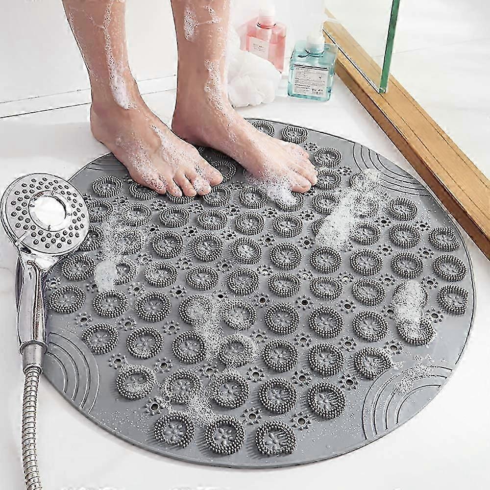 Anti-Slip Bath Mat with Massage Texture and Drainage Holes, 55x55cm Grey
