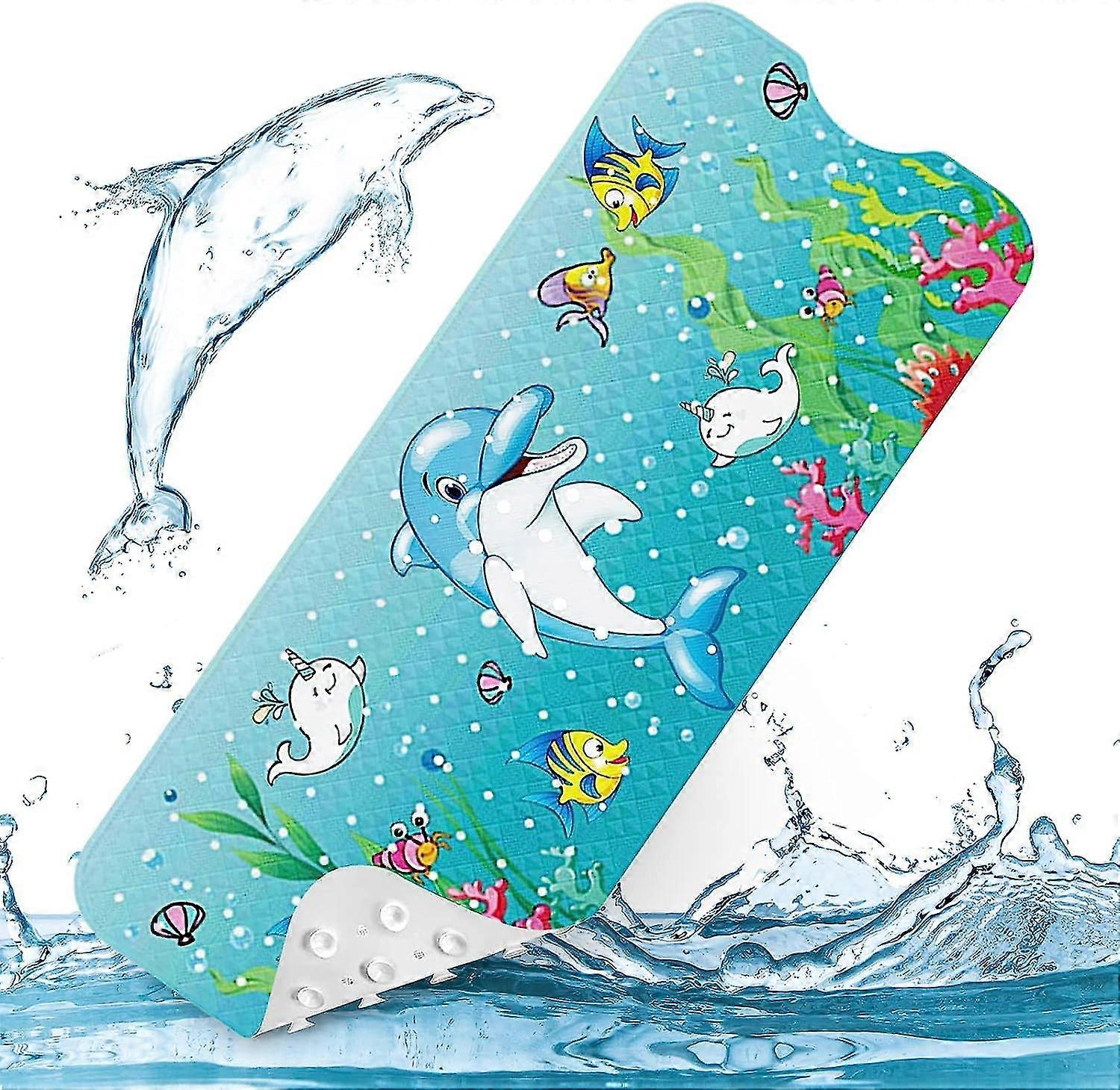 Anti-Mildew and Machine WashableThis non-slip mat has a drainage hole design that improves water flow, no standing water, no dirt, no mildew. And made from high quality materials, the bath mats can be machine washed, just hang and air dry after cleaning. SafetyMade in high quality allergen-free vinyl, the bath mat is antibacterial and mildew resistant, non-toxic, BPA-free, latex-free and phthalate-free. Safe and non-slipThe bottom of the non-slip pad contains Hundreds of large suction cups to ensure it can be firmly attached to bathtub or smooth floor; the non-slip surface provides an absolutely secure hold even when using shampoo and soap. Dont worry, this non-slip mat will provide you and your family with a safe shower. Large SizeThe size of the bath mat is 100cm x 40cm, this which provides 30% more coverage than regular bathroom safety mats. The extra long bath mat brings a sturdy and durable modern style to the bathroom, suitable for all types of bathtubs. Please note Before use, please wipe the floor with a damp mop ( the suction cup of the non-slip mat easily adheres to wet floor tiles) or spray water on the floor, then spread the non-slip mat on the floor tiles, it is better to get up and step on it several times, so that it is firmly fixed to the ground. The mat can only be used on clean and smooth surfaces.