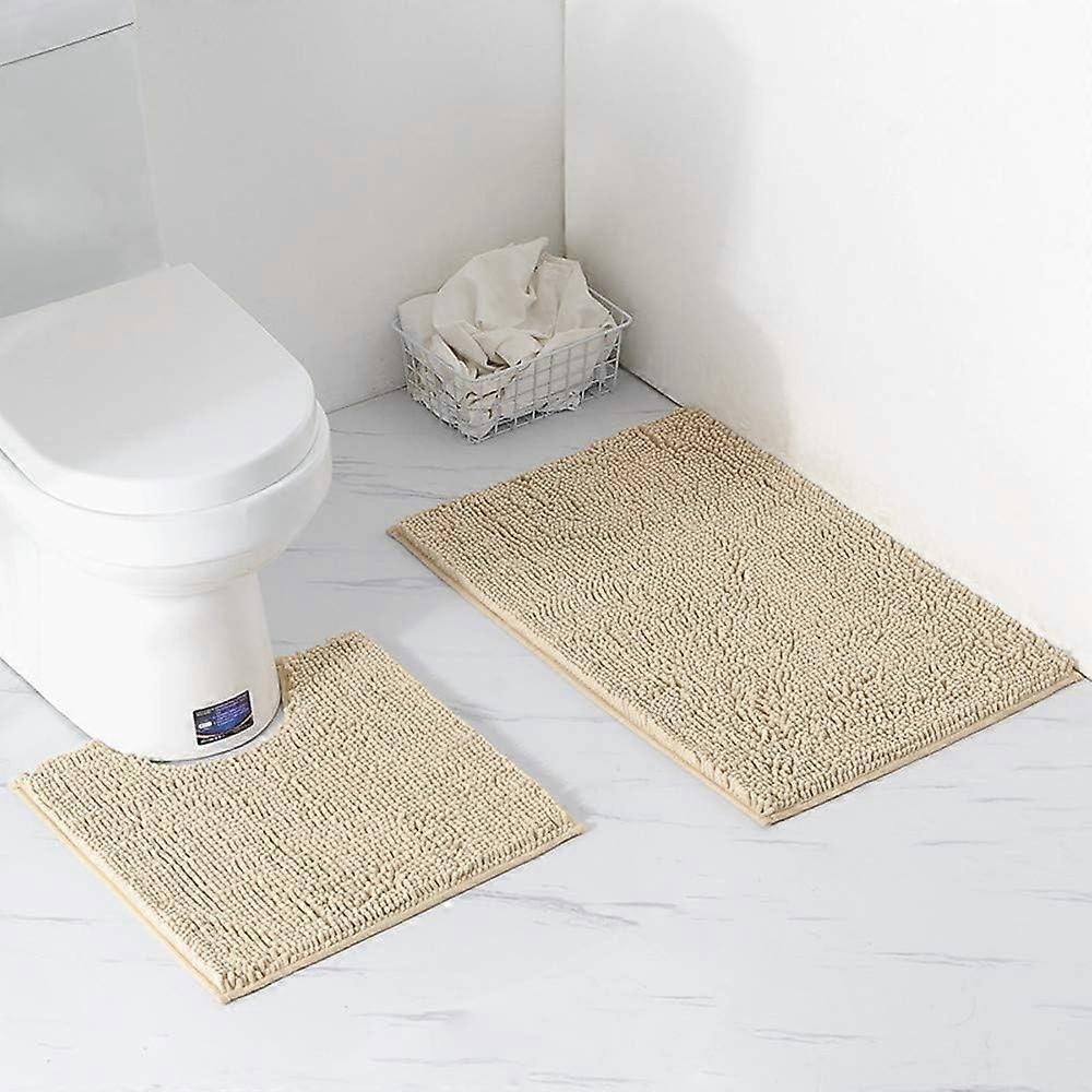 Non-Slip Bath Mat Set 2 Piece Bath Mat 50x80cm Microfiber Chenille Toilet Mat 5050cm Machine Washable Rug for Bathroom (Khaki)