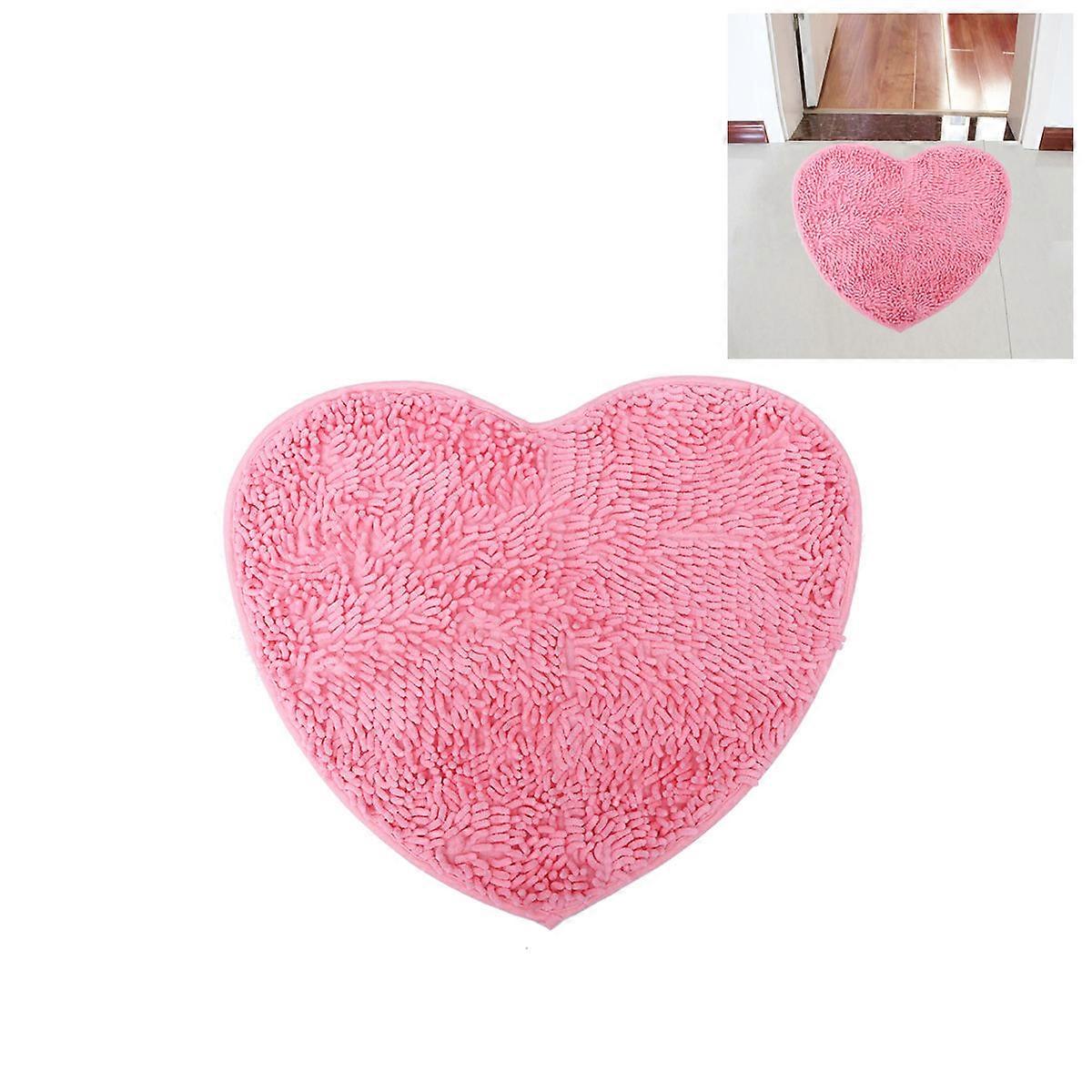 Non Slip Bath Mat Microfiber Chenille Fluffy Heart Shaped Carpet Pink 1Set