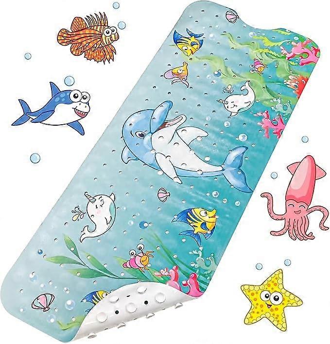 Non-Slip Bath Mat 100x40cm with 200 Suction Cups PVC Material BPA Free Bath Mat | Cartoon Sea Animal