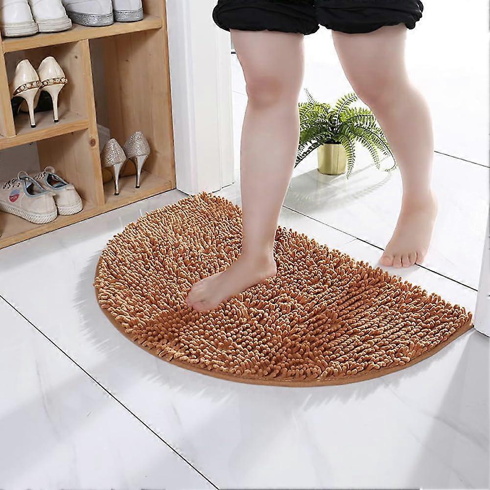 Non Slip Bathroom Door Mat Half Round Shaggy Microfiber Super Water Absorbent Chenille Quick Drying Champagne 33x50cm Champagnecoloured 33x50cm
