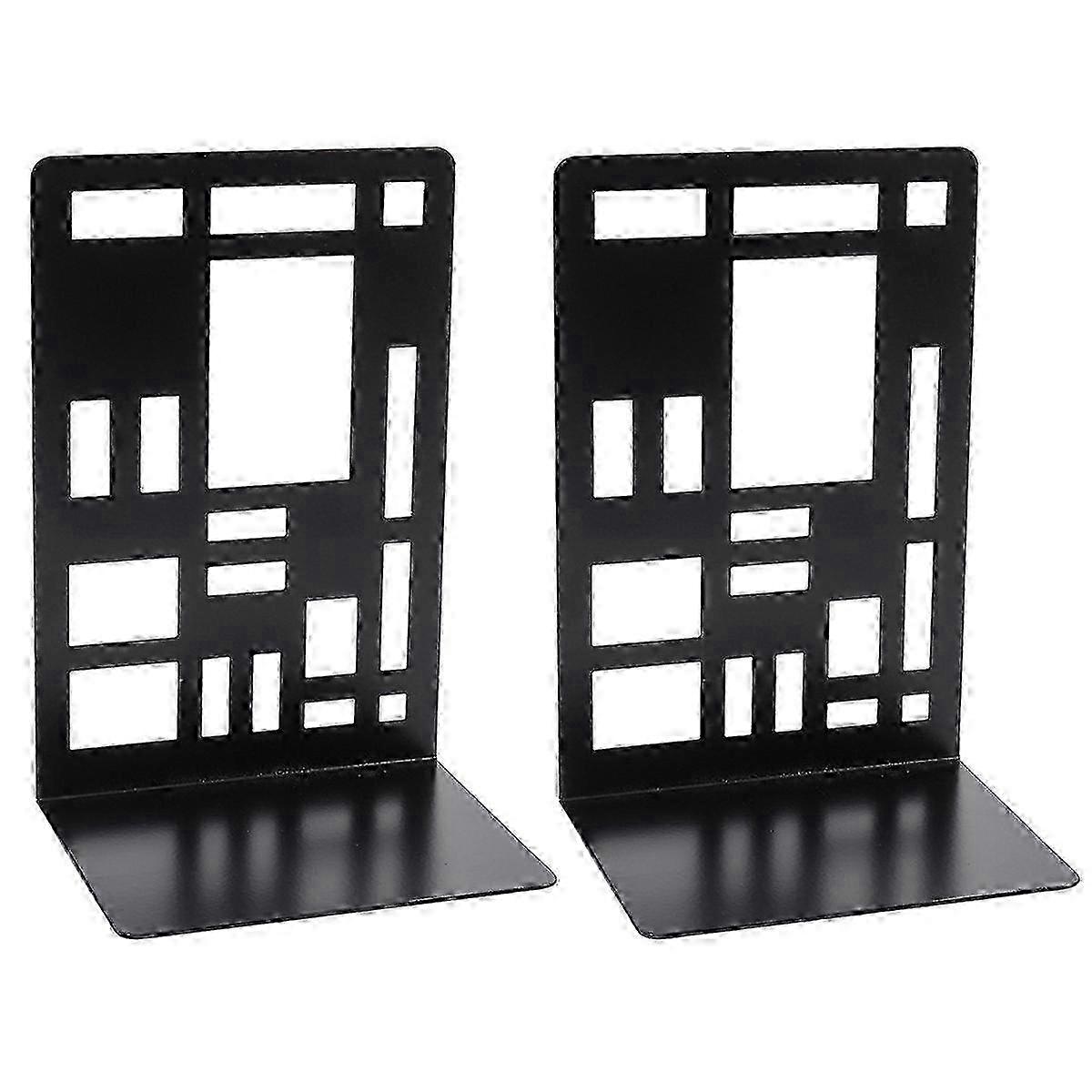 Heavy Duty Geometric Metal Bookends with Anti-Slip Pads, Powder-Coated Decorative Design for Bookshelves