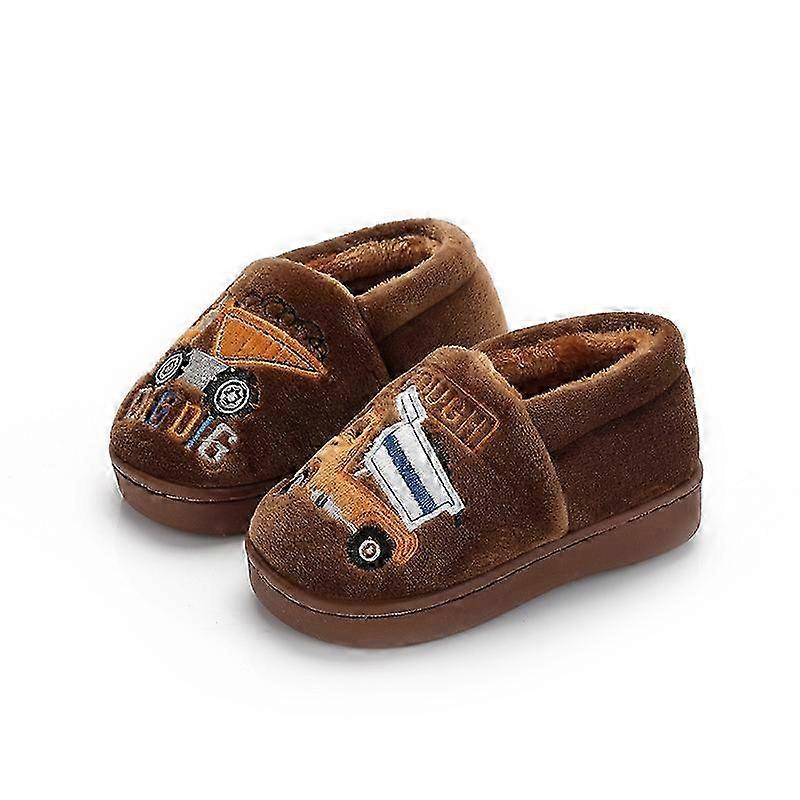 Non-Slip Winter Children's Home Slippers Unisex Printing Plush Slippersbrown,22