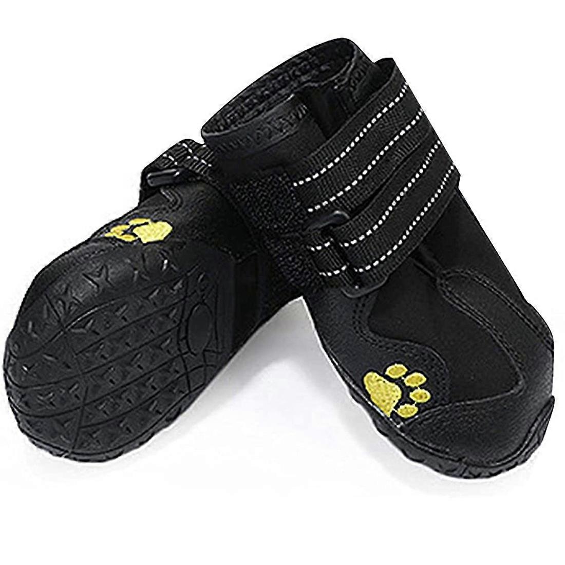 [Warm and Comfortable] In addition to providing warmth, these dog shoes are also relatively soft and comfortable. These will bring more happiness to your dogs during the whole winter. In summer, it can also protect the dog's feet well from being scalded by the hot road. [Choose Fit] The size of our dog shoes is measured according to the inside of the shoe. You can buy them according to the size of the dog's paws. [Avoid Scratches] If you need to prevent your furniture from being scratched, you can put on these products for your pets. [Frostbite and Scald Prevention] After putting on these boots, your dogs can not only play unscrupulously on the hot sidewalk but also play with you on the icy snowdrift. [Keep Home Clean] Wear dog boots when walking your dogs and take them off when you come back to avoid some dirty things being taken home by your dogs' paws. The Advantages of Choosing this Dog Shoes 1. Do not always wash your dogs' feet. In order to keep clean, it is generally necessary to wash your pet's feet every day, but after putting on these dog boots, you can reduce the number of foot washes to prevent diseases caused by the dog's long-term damp toes. 2. It can prevent claws from scratching. Pets are easily scratched by objects such as stones, sand or brick fragments when walking, which can effectively prevent such things from happening. 3. Prevent pet damage. Indoors, pets can avoid the scars on furniture at home after putting on shoes. 4. Get out of the street handsomely. Wearing these dog boots is also a fashion for dogs, keeping warm in winter and preventing scalding in summer. 5. A must-have product for snowy days. After it snows, the city will sprinkle salt to melt the snow. The coarse salt is caught in the dog's paw, which is not good for the dog's paw. Size include: 2# inner length 6cm, inner width 4cm 3# inner length 6.2 cm, inner width 4.5 cm 4# inner length 6.5cm, inner width 5cm 5# inner length 7cm, inner width 5.7cm 6# inner length 7.5 cm, inner width 6.4 cm 7# inner length 8cm, inner width 7cm 8# inner length 8.5 cm, inner width 7.5 cm Color: Black Package includes: 1set* pet shoes Warm Tips When your dog wears dog boots for the first time, you need to let him meet new friends first and get used to it. Although this boot is waterproof, dog boots cannot be used in deep water or sand because water or fine sand may leak out from the seams.