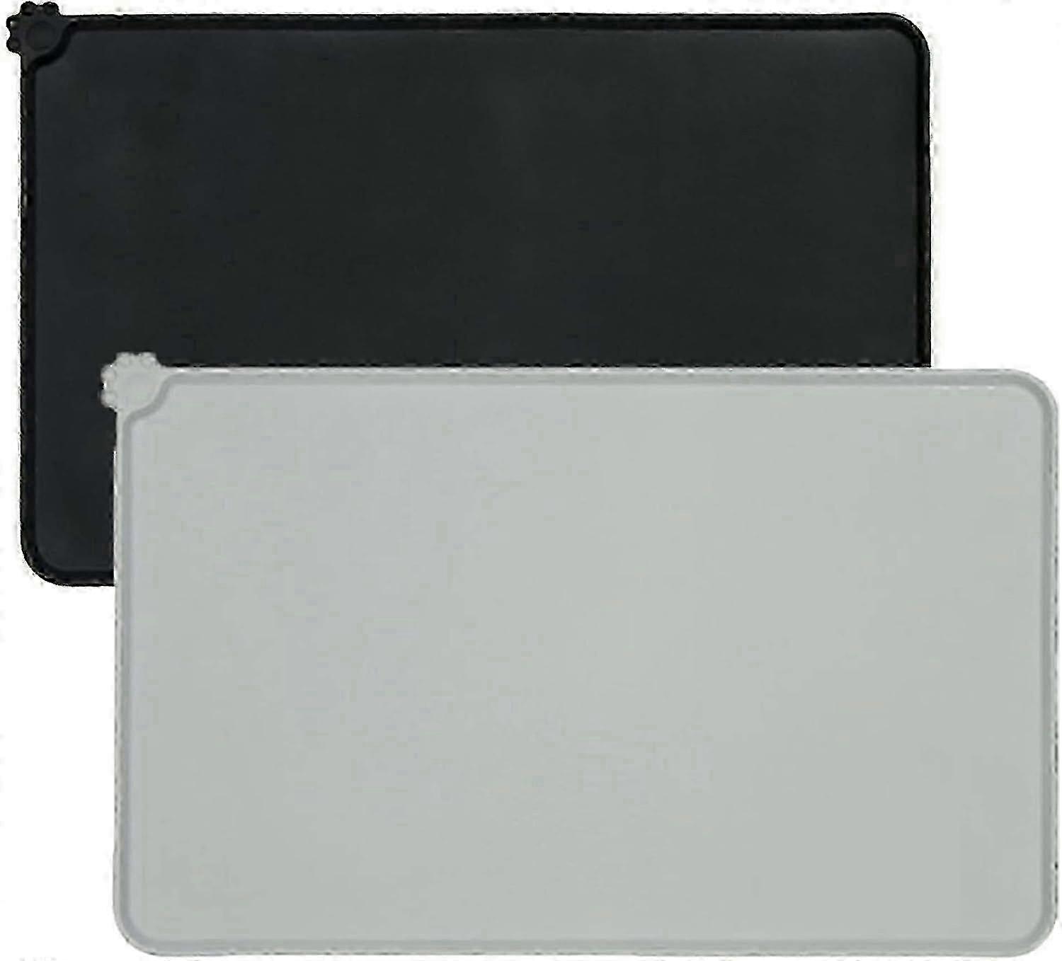 Non-Slip Waterproof Wipeable Easy Clean Feeding Bowl Mat for Pets, Suitable for Cats and Dogs (Black)