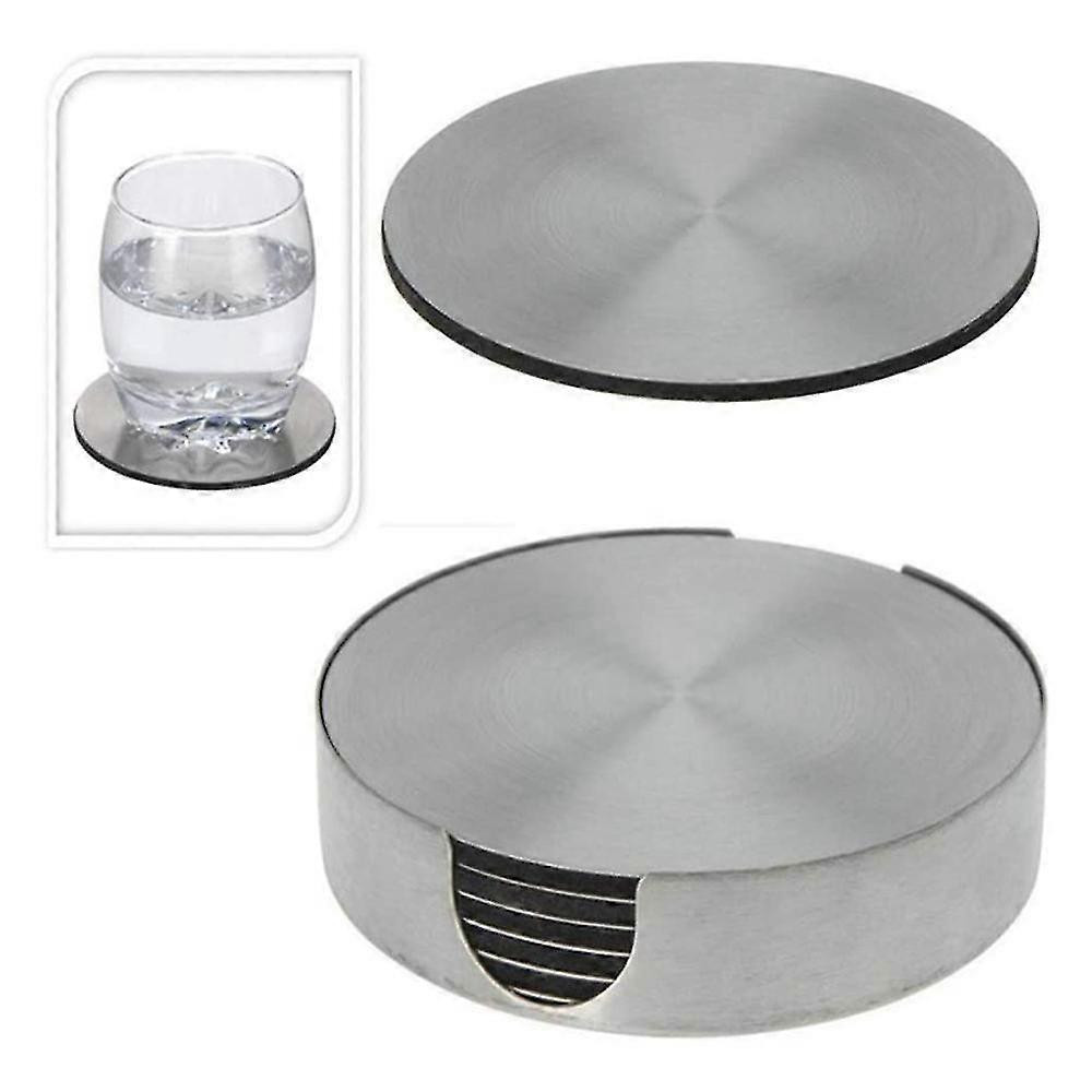6pcs Stainless Steel Drink Coasters with Anti-Skid EVA Bottom, Round Tableware Mats