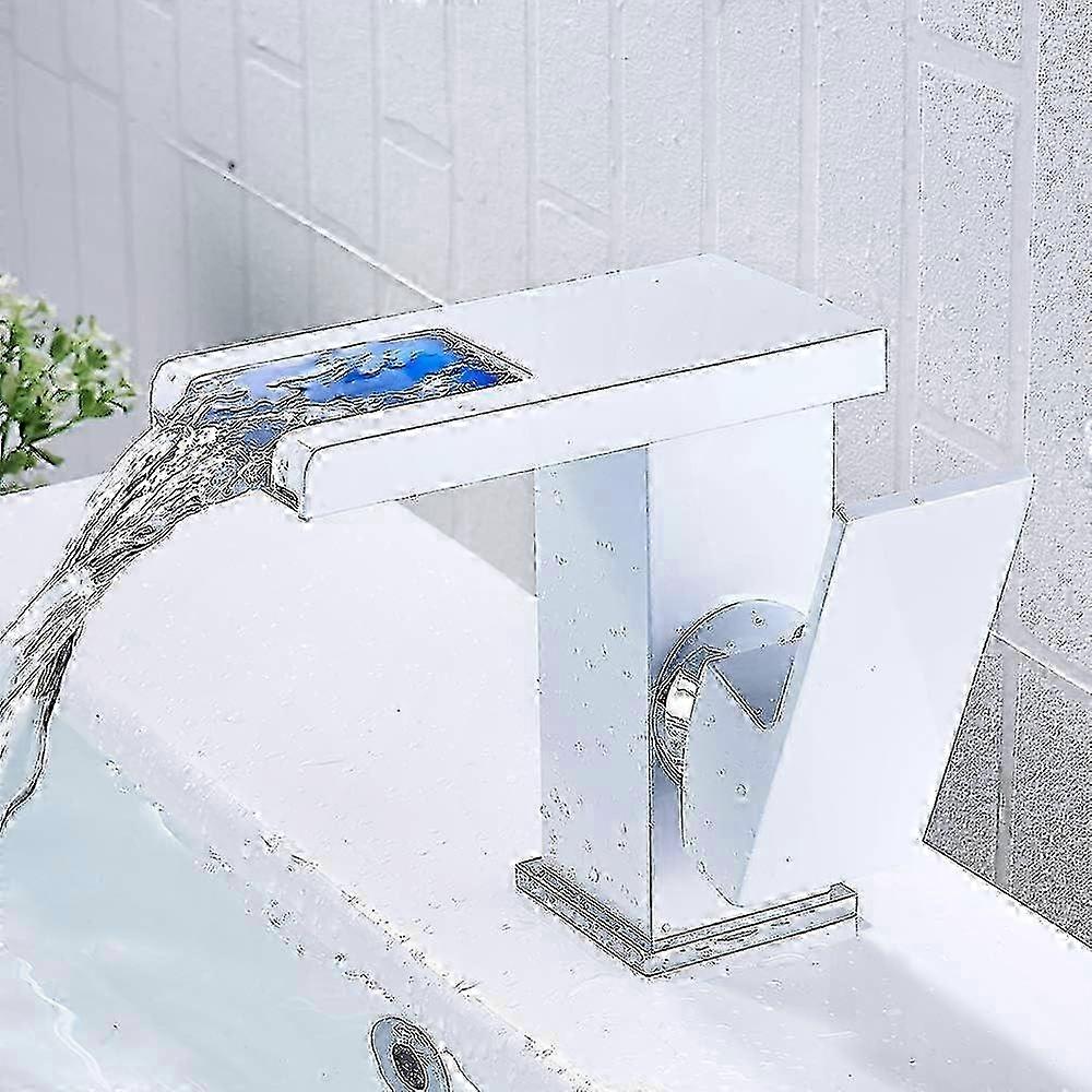 White LED Bathroom Faucet with Waterfall Spout