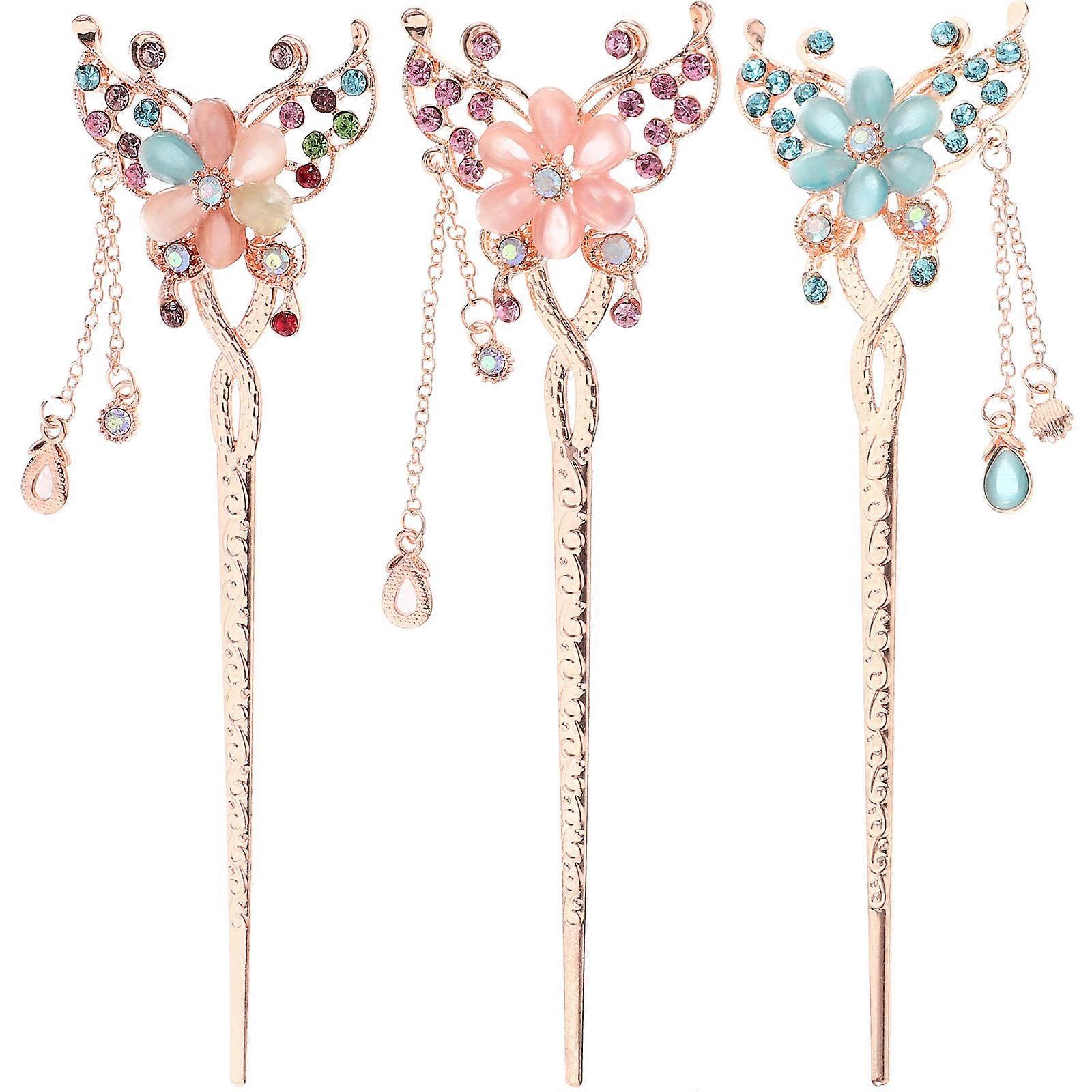 3pcs Fashionable Hair Sticks with Flower Design for Hanfu Cosplay and Everyday Use Assorted Color