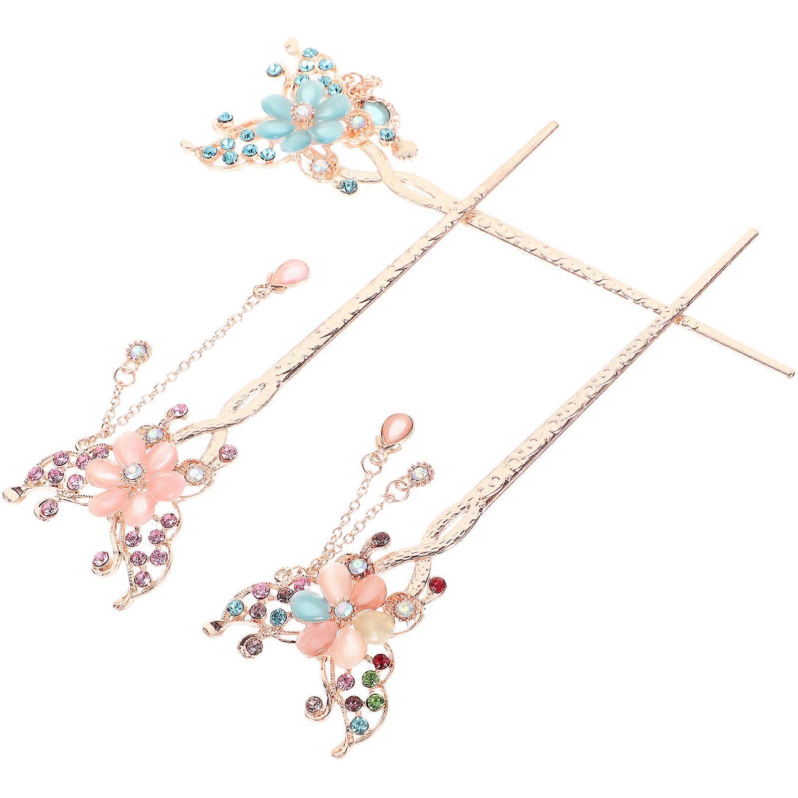 3pcs Fashionable Chinese Hairpins with Flower Tassel for Hanfu Cosplay and Daily Bun Hairstyles