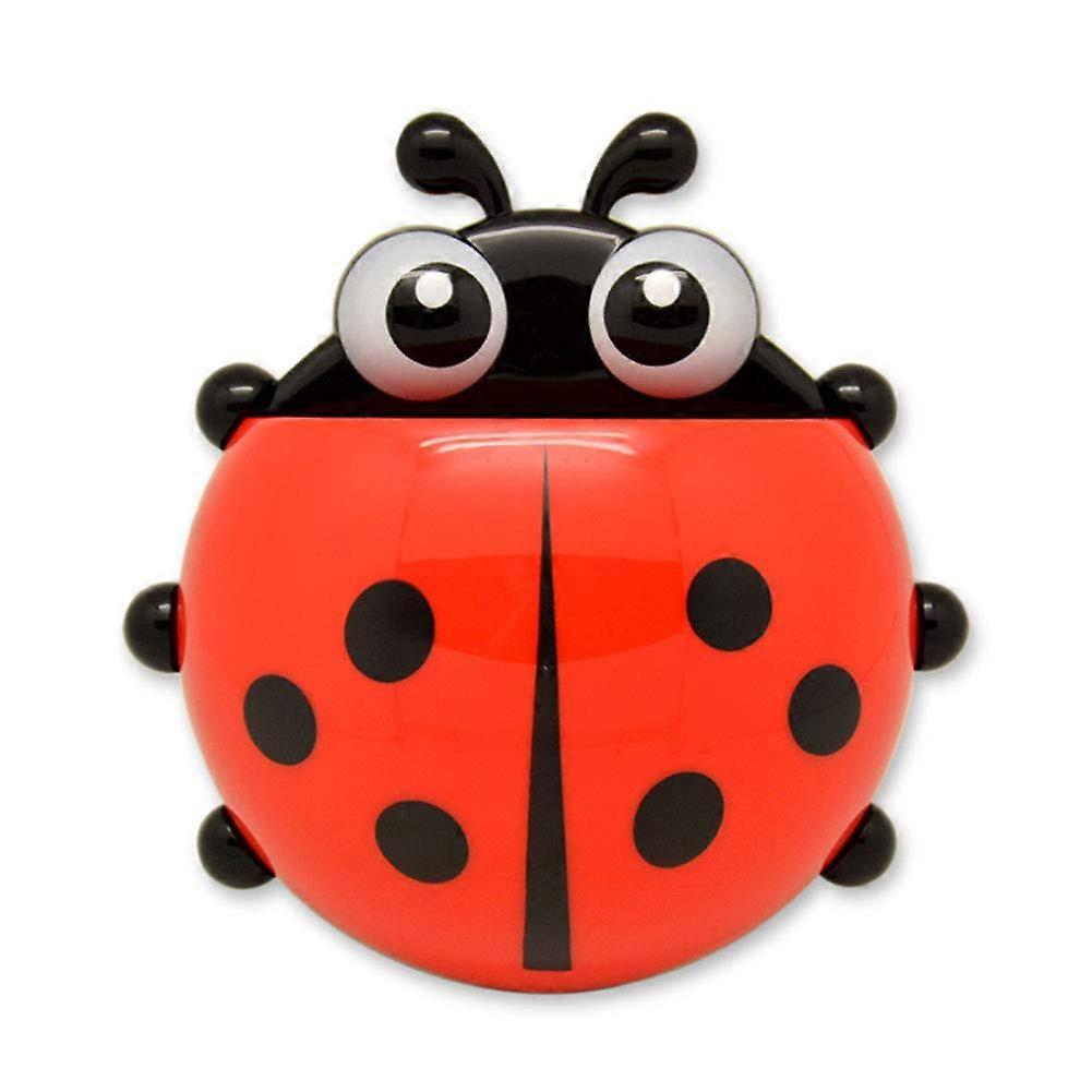 Cartoon Ladybug Toothbrush Holder Vacuum Suction Family Bath Wall Organizer Red Strong Adhesive Cup Decor