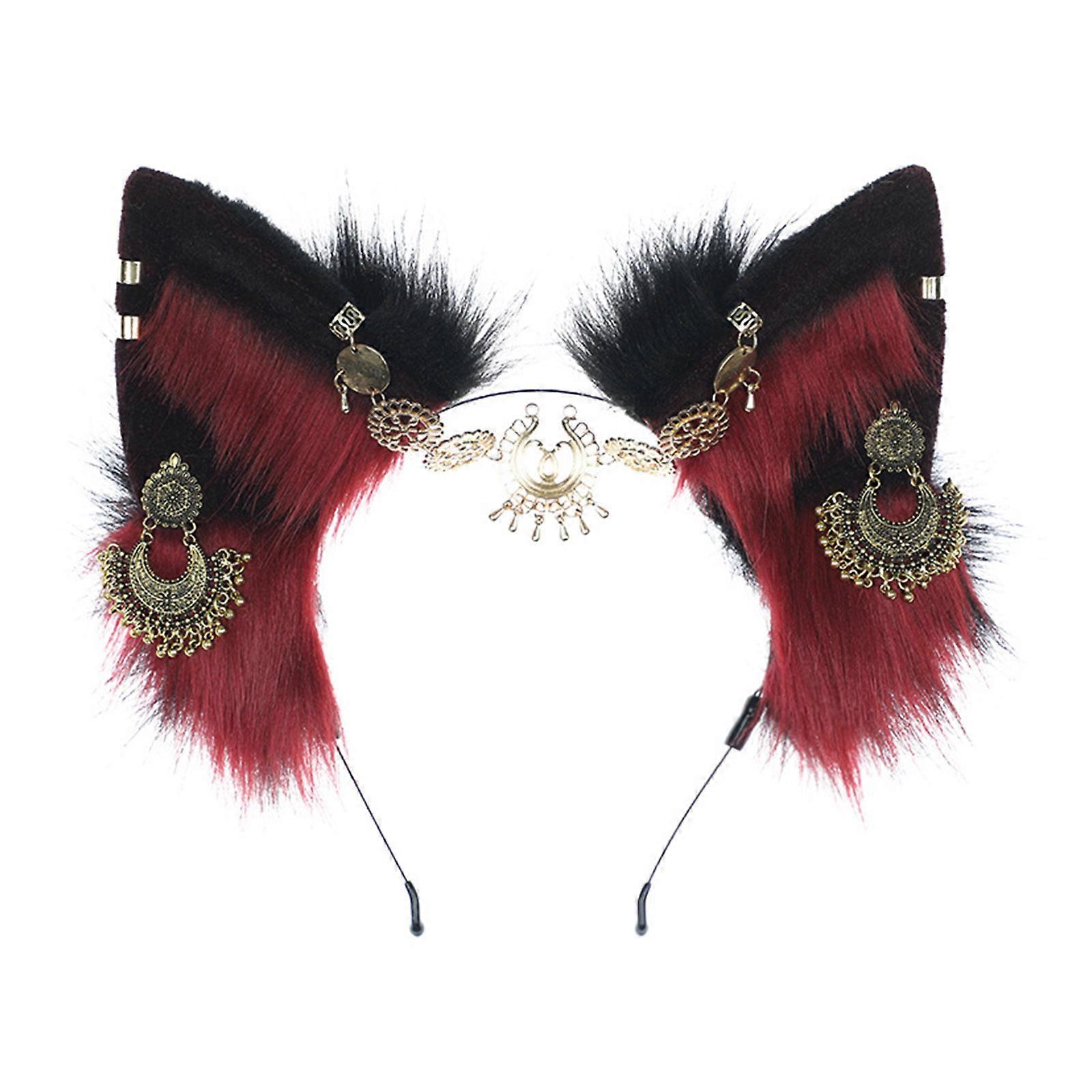 Cartoon Headband Cat Foxes Ears Shape Hair Hoop Plush Carnivals Party Headpiece Cosplay Party Costume Props Unisex Burgundy