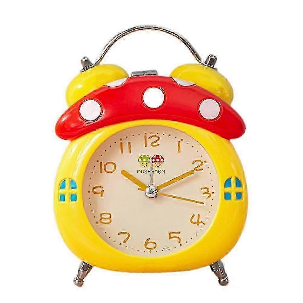 Cartoon Mushroom Children's Alarm Clock Loud Awakening Tool Silent Bedside Bedroom Alarm Clock Decorative Clock -Yellow