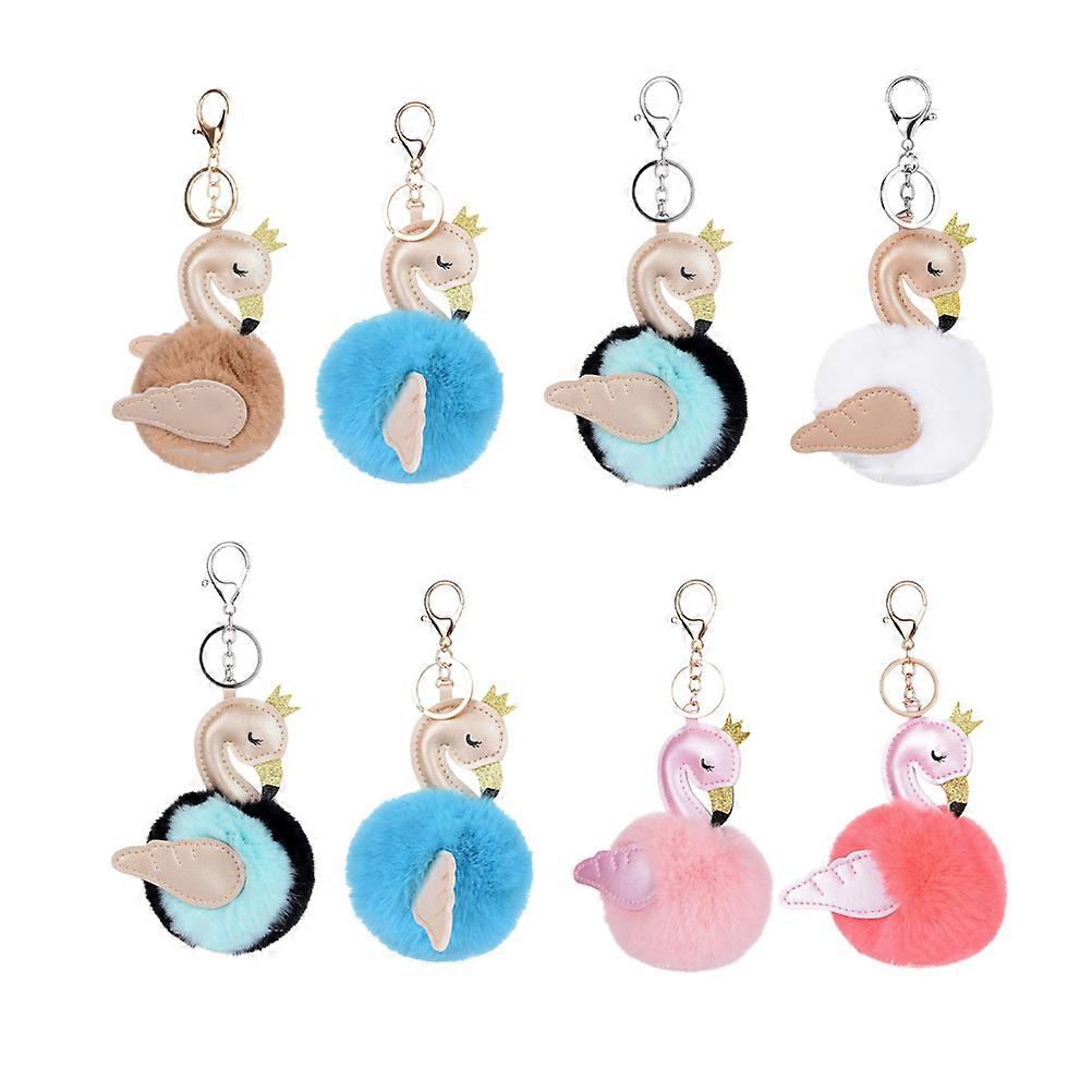 Cartoon Keyrings Ball Shape Plush Leather Protect Keys Bag Decoration For Women 8Pcs
