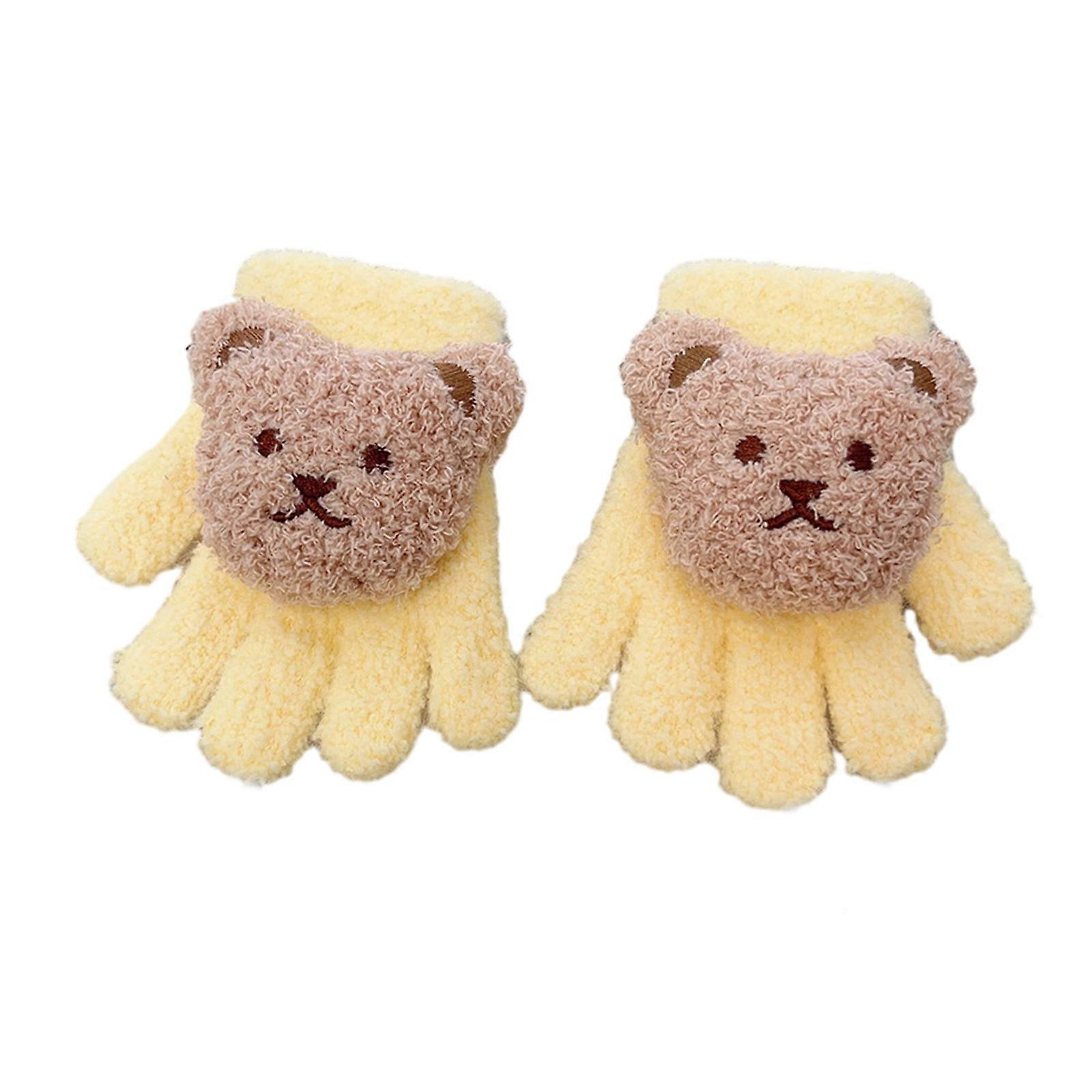 Cartoon Bear Gloves Breathable Baby Winter Mittens Solid Color Knitted Gloves Versatile Winter Accessories for Toddlers Yellow
