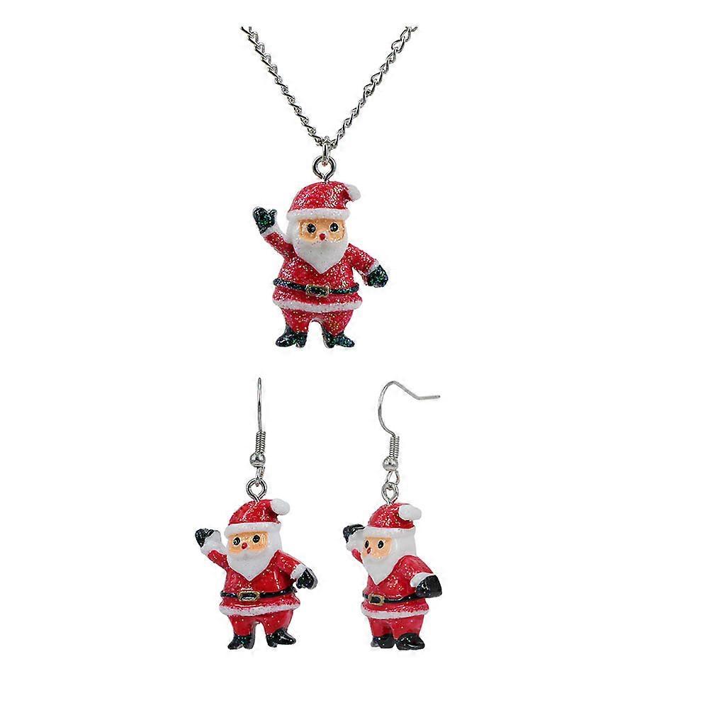 Festive Dinner Jewelry Set Featuring Cartoon Santa Necklace And Earring For 1Set