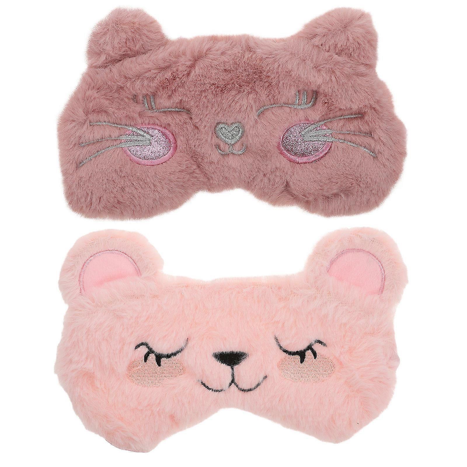Cartoon Sleeping Eye Masks 2Pcs Plush Shading Blindfolds Ideal For People Who Need Sleep Aids At Home Or Traveling