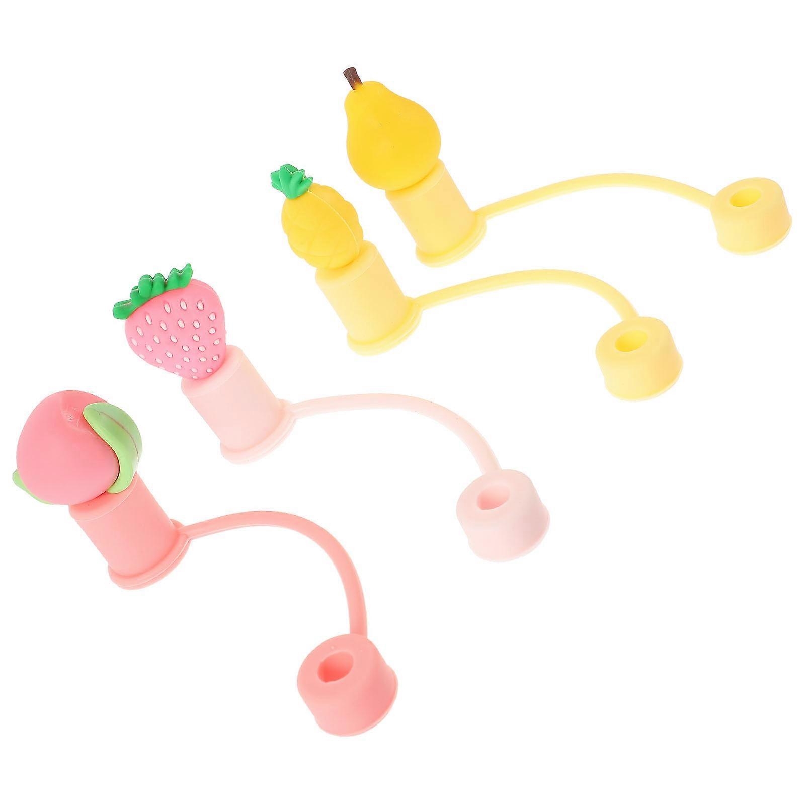 4pcs Reusable Straw Covers with Cartoon Fruit Designs, Airtight Dust Toppers for Tumblers, Splash Resistant Caps for Outdoor Parties & Daily Use