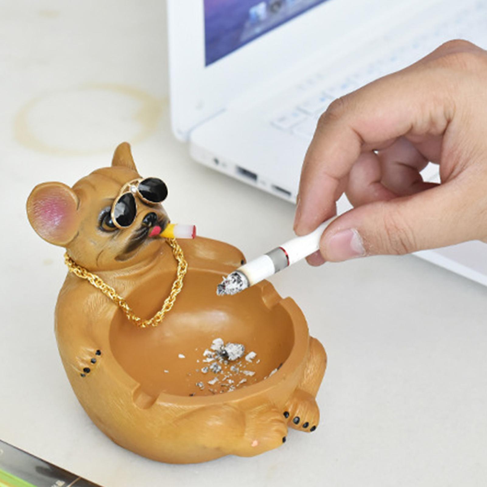 Cartoon Animal Ashtray Household Innovative Decorative Bully Dog Ashtray for Living Room Brown