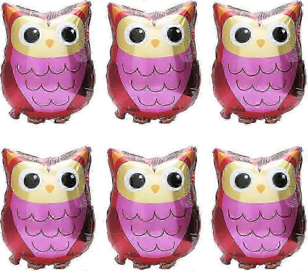 Cartoon Woodland Owl Balloons, 6 Pack Mylar Foil for Birthday Party Decor