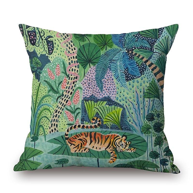 Cartoon Rainforest Tiger On Cotton Linen Pillow Cover Cushions & Decorative Pillows