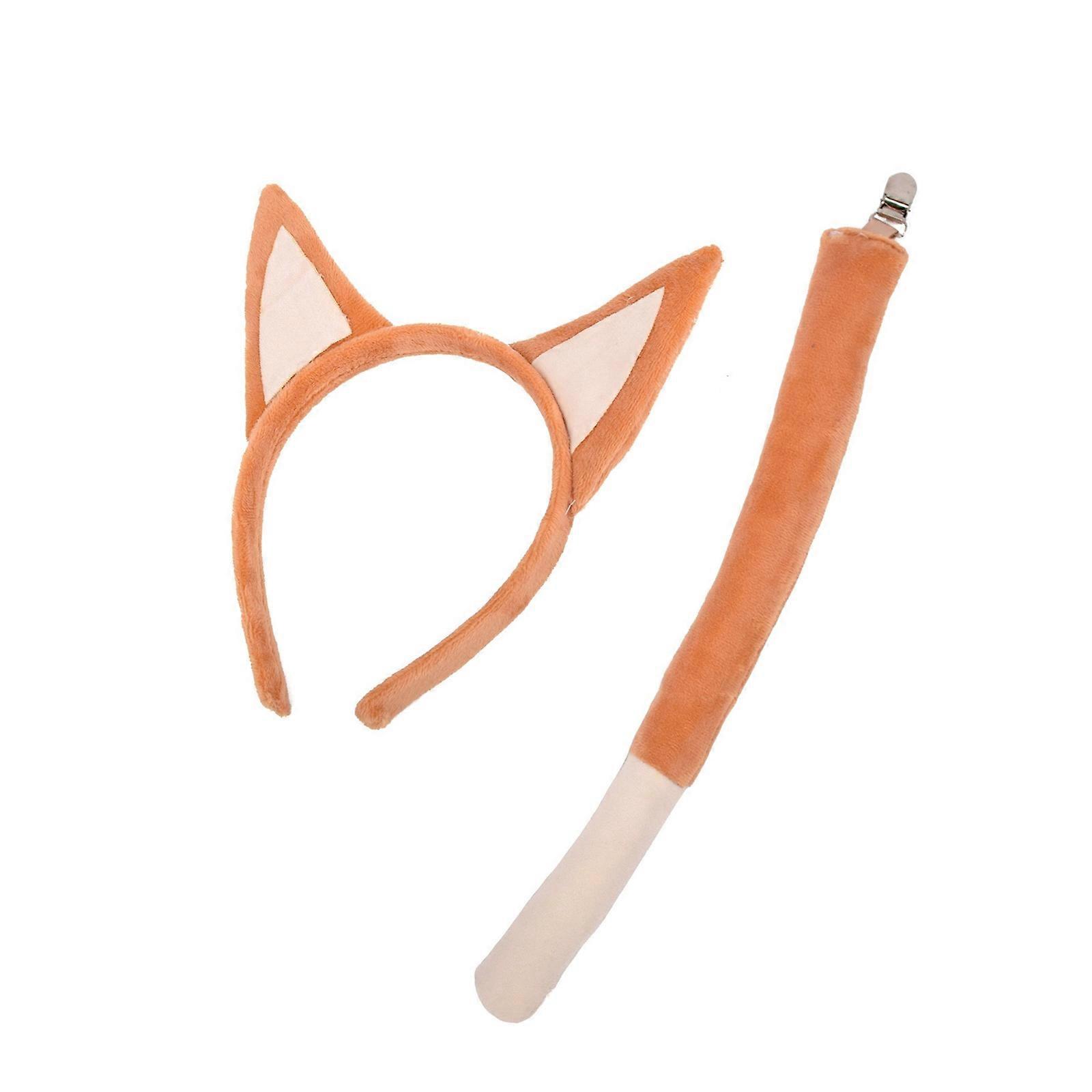 Cartoon Dog Themed Animal Ear Headpiece and Plush Tail Set for Children Dressing Up Occasion Halloween Cosplay Accessory light brown