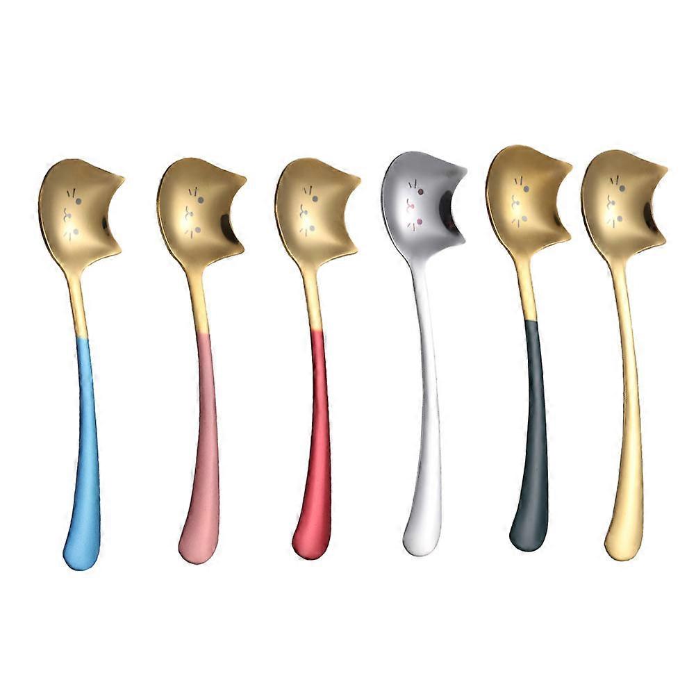 Cartoon Cat Spoon Stainless Steel Long Handle Stir Spoon 6Pcs Assorted Colors
