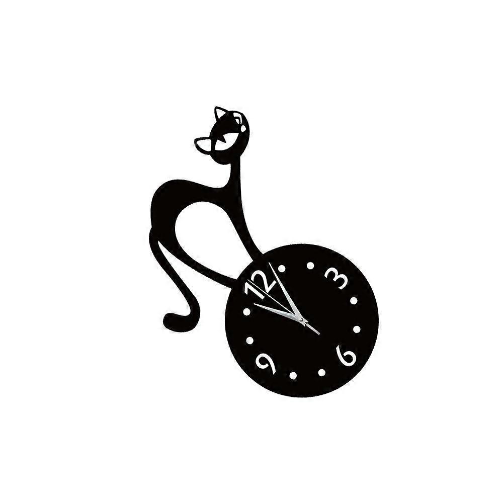 Cartoon Cat Wall Clock Decorative Clock for Timekeeping Use 1Pcs Black