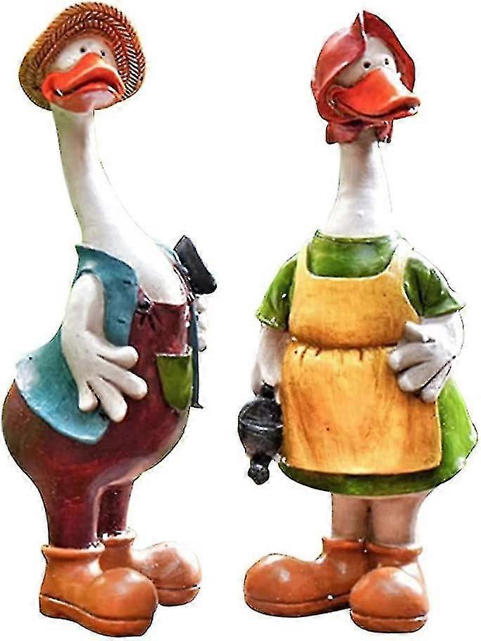 Cartoon Art Animal Sculpture Couple Duck H-statue Resin Garden Ornaments For Outdoor Pond Yard Lawn Decoration Home Decor Gift,1 Pair Yyds