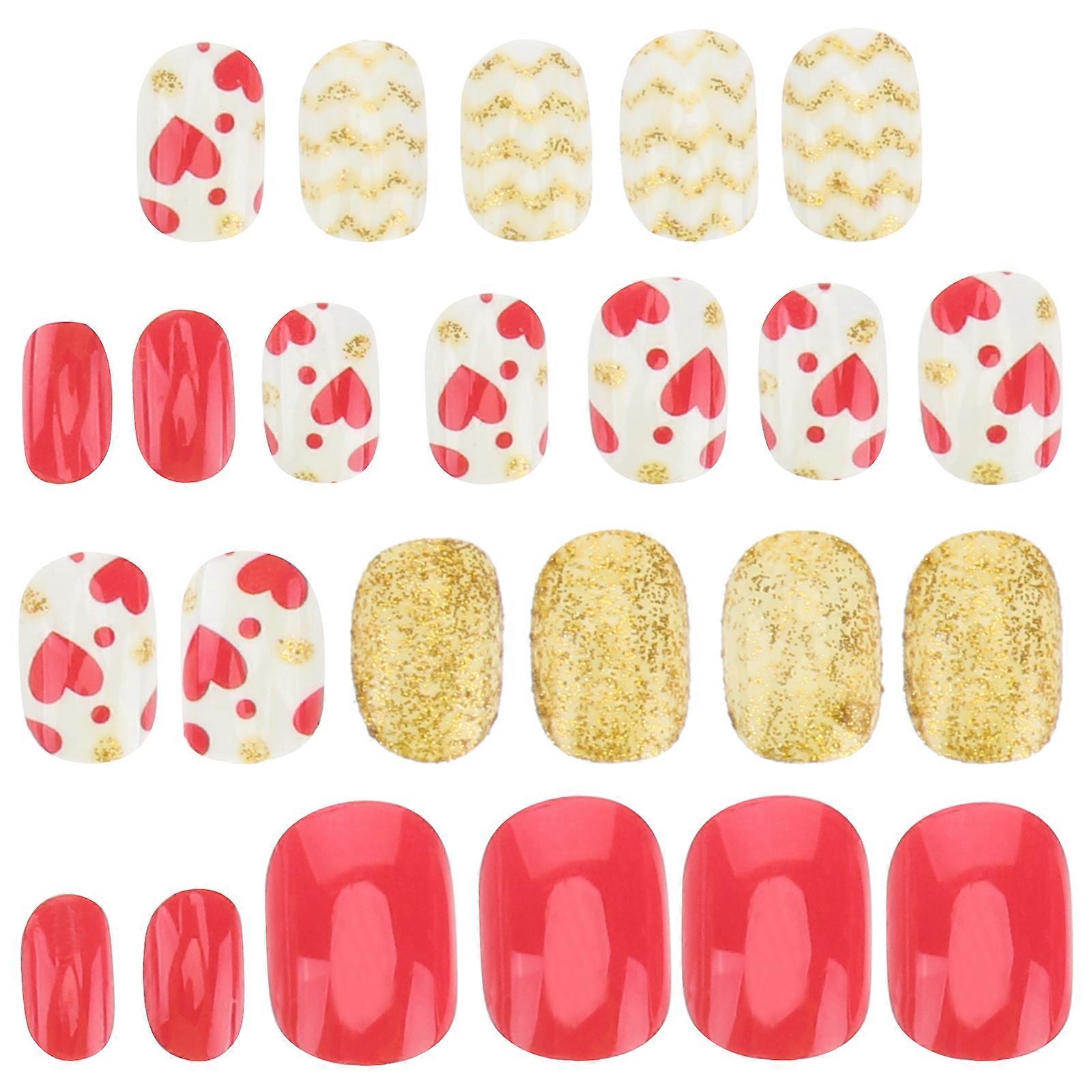Cartoon Kids Nail Tips Full Cover Nails for Children Assorted Color No Gel Polish Needed 24Pcs
