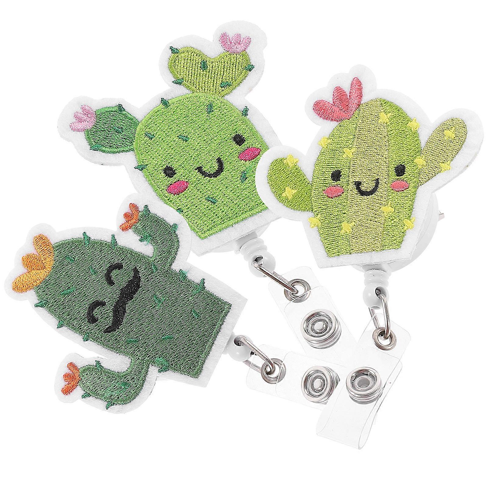Cartoon Cactus Badge Clip Retractable Badge Holder Decorative Office Use Green 4.32x2.36x0.98in 3Pcs