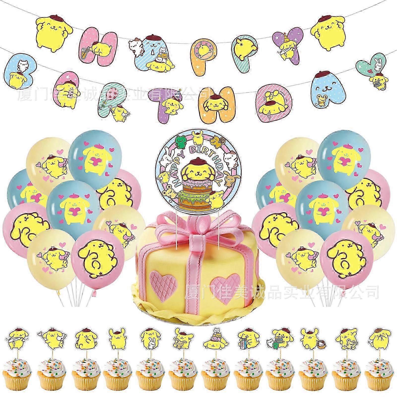 Material: Paper Product No.: Birthday decoration Size: Pull flag, 18 balloons, 12 small power strips, 1 large power strip, pudding dog party set Is it IP authorized: No Style: Sanrio Applicable holidays: Christmas, Valentine's Day, Spring Festival, Father's Day, Mother's Day, Teacher's Day, New Year's Day, Chinese Valentine's Day, Halloween, National Day, Children's Day, Women's Day Category: Hanging ornaments