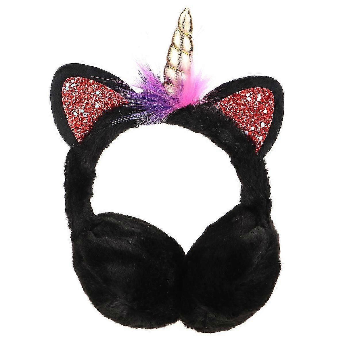 Cartoon Unicorn Design Earmuffs Plush Ear Warmer Winter Ear Covers Headwear for Girls Women (Black)